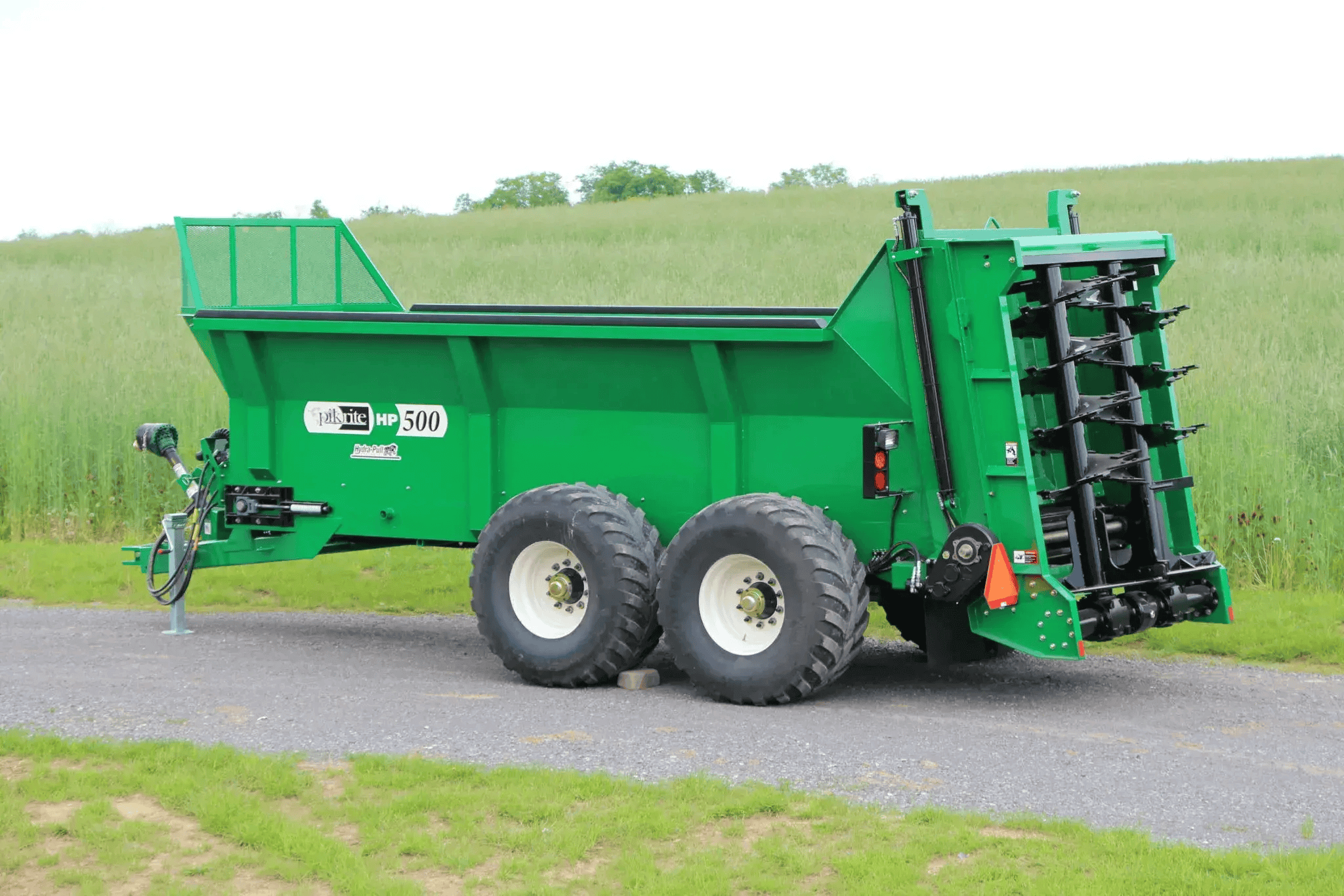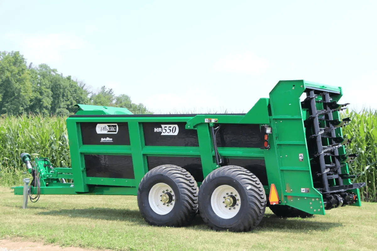 With a 550 bushel capacity, the Pik-Rite HR550 spreader will provide you with years of superior performance. Two-stage hydraulic push technology carries the front portion of the load which greatly reduces compaction optimizing your spread pattern. The aggressively contoured, double curve hydraulic ram fits snugly into the vertical beaters providing optimal clean-out at the end of the load! The quick detach beaters provide versatility for stock piling and a variety of other uses.