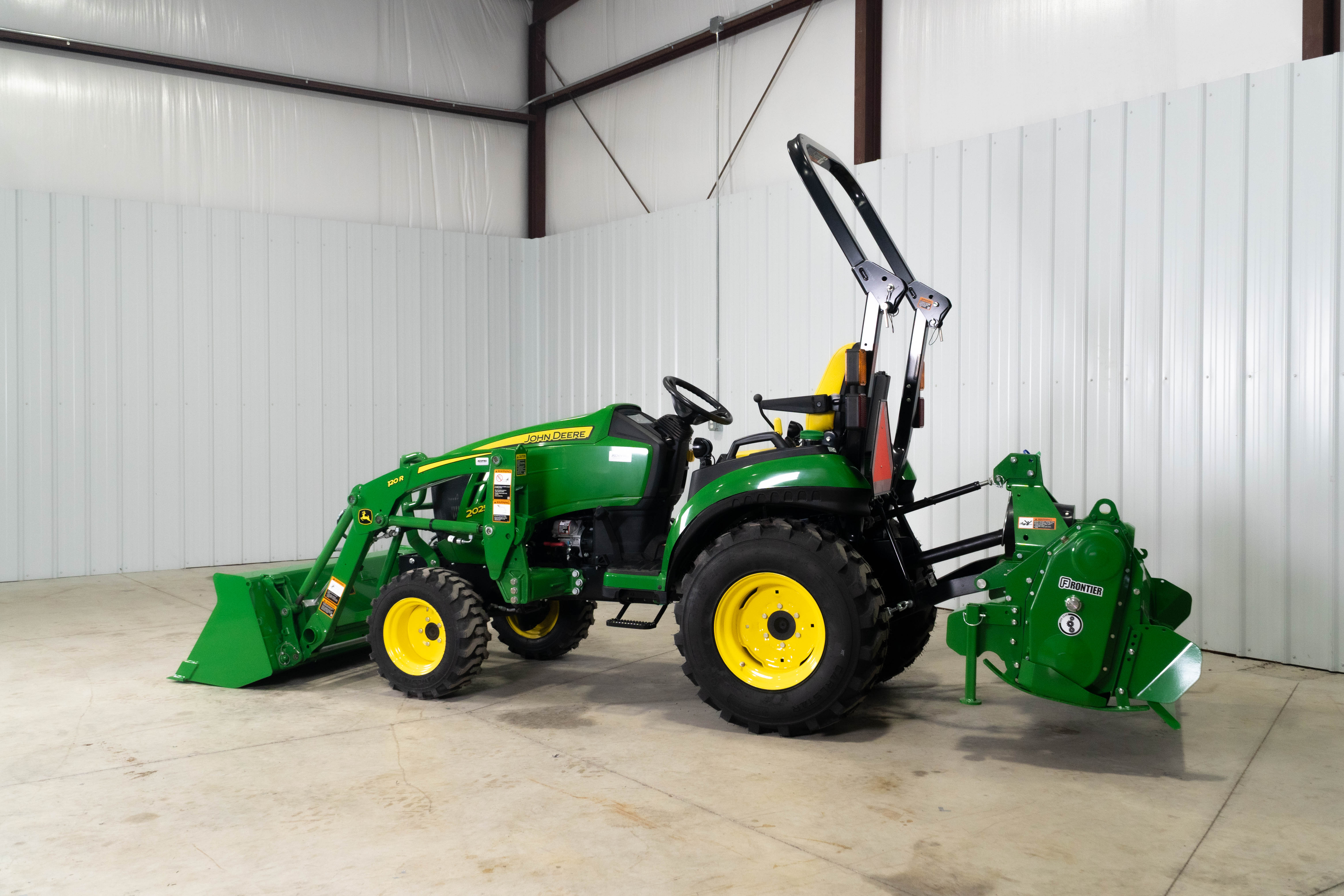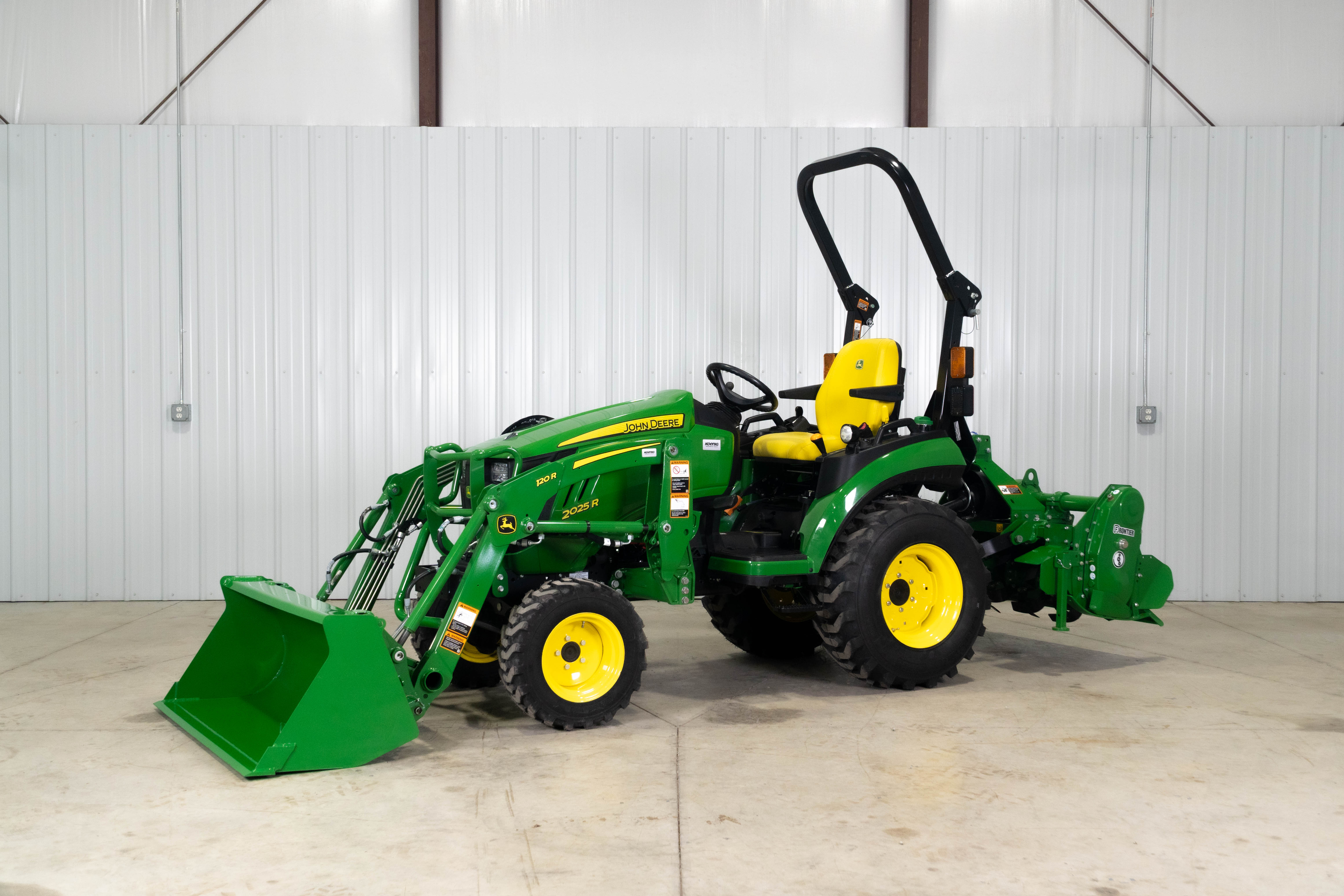 The 2025R Hero Package includes a John Deere 2025R compact tractor, 120R front loader and RT3049 rotary tiller all set up for garden prep and seasonal property projects. It's configured for owners who need more tractor than a 1 Series.